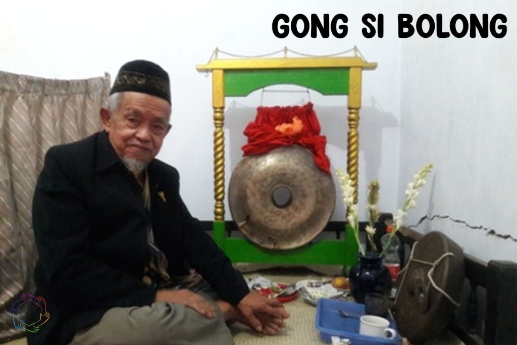 Mengapa dinamakan Gong Si Bolong? Nama ini berasal dari kondisi fisik gong utama yang sudah sangat tua sehingga berlubang di bagian tengahnya, tempat biasanya terdapat benjolan atau pencon pada gong pada umumnya .